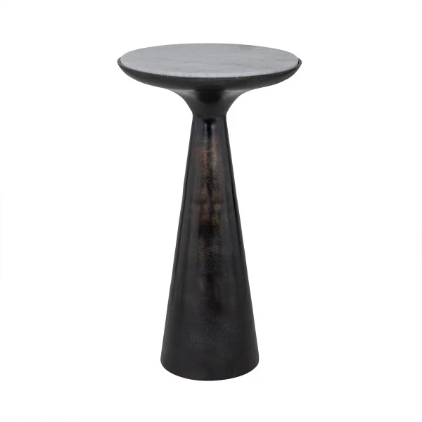 De Richmond Interiors Ethan bijzettafel maakt indruk met een elegant design en bijzondere materialen. Het aluminium is afgewerkt in vintage zwart; een prachtig podium voor het blad van wit marmer! Dankzij het vintage zwart gaat de bijzettafel samen met zowel een modern-industrieel als luxe retro interieur.