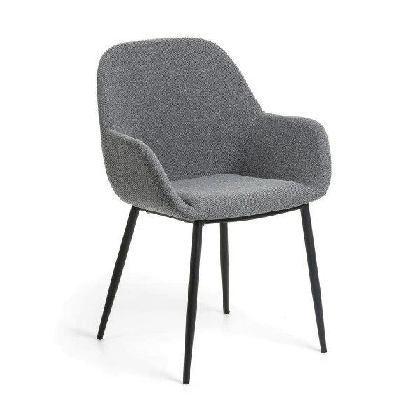 Deze Kave Home Konna armstoel is bekleed met een ruwe stof en is verkrijgbaar in vier kleuren: geel, blauw, lichtgrijs en donkergrijs. Kies je favoriet of combineer twee kleuren voor een speels effect aan tafel! De Konna armstoel is ook verkrijgbaar met een fluwelen stof in verschillende kleurvarianten.