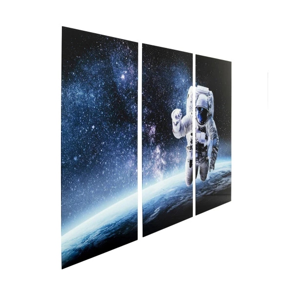 Met het Kare Design Man in Space drieluik aan de wand waan je je in hogere sferen. Eén blik op de astronaut en je zweeft met hem mee door de ruimte! Het drieluik heeft een formaat van 240×160 centimeter, zodat je echt wordt opgezogen in dit prachtige beeld. Ook omdat de foto in glas is gelamineerd: elk detail wordt versterkt!