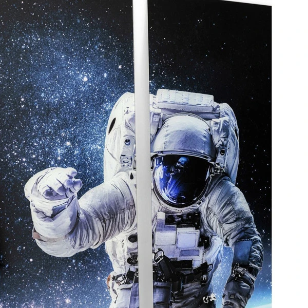 Hang het Kare Design Man in Space drieluik van 240×160 centimeter in de slaapkamer en droom er lekker bij weg. Of geef er de woonkamer een make-over mee: je zithoek krijgt een compleet ander aanzicht! Liever geen drieluik? De astronaut is ook te zien op een panorama glasschilderij met een hoogte van 80 centimeter breed.