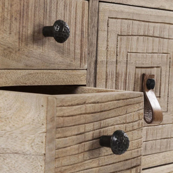 Het Kare Design Puro dressoir brengt een authentieke touch naar je moderne woonkamer! De lades zijn voorzien van uniek houtsnijwerk en bijzondere handgrepen, waardoor een speels en design geheel ontstaat. Berg er losse foto’s, spelletjes, opladers en administratie in op; of gebruik het houten dressoir voor ondergoed en sokken in de slaapkamer! Zo krijgt elk type kledingstuk een eigen plekje.