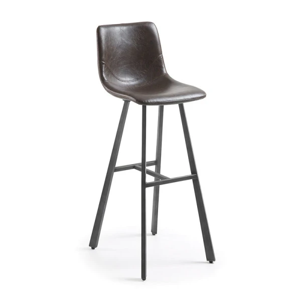De Kave Home Trap barkruk van geborsteld PU leer en staal heeft een industriële uitstraling. Schuif de barkruk aan een thuisbar van metaal of robuust hout en geniet van de comfortabele zit! De combinatie van een rugleuning, PU leer en een voetensteun geeft de barkruk een aangenaam karakter. Je hebt keuze uit een zitting van bruin of donkerbruin geborsteld PU leer.