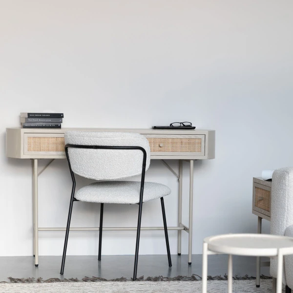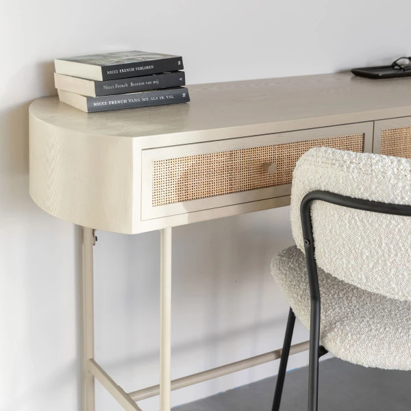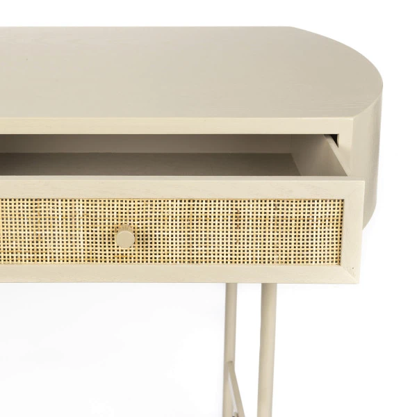 - Beige gelakt en lades met natuurlijk rotan