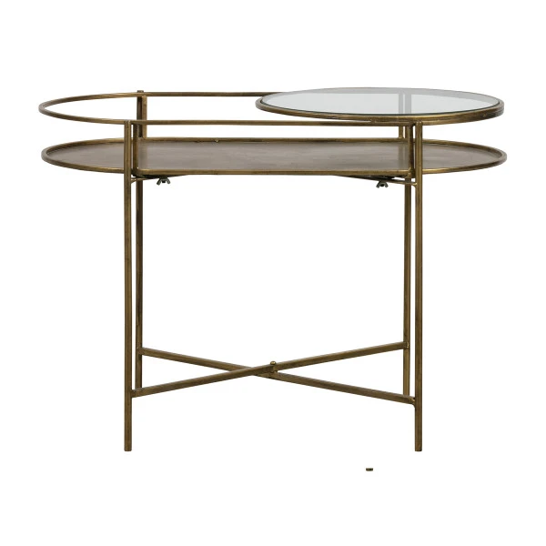 De BePureHome Adorable bijzettafel heeft een aantal verrassende elementen. Zo is het staal afgewerkt in een warme, chique antique brass tint. Boven een ovaal blad pronkt een sierlijk frame met daarin een kleiner, rond plateau van glas: dat geeft een bijzonder effect! Leg een stapel tijdschriften op het antique brass blad en gebruik het glazen blad voor je drankjes.