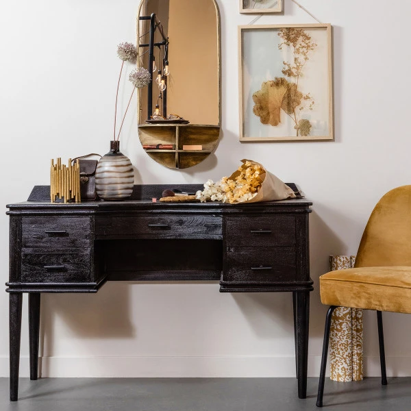 Bij de BePureHome Boudoir kaptafel heb je keuze uit twee kleurvarianten: bruin of zwart acaciahout. Welke past het beste in jouw slaapkamerinterieur? De kaptafel komt ook heel goed tot recht in de woonkamer; dan kun je er andere spulletjes in bewaren. Dankzij het robuuste acaciahout en de ronde vormen past de kaptafel mooi in een retro interieur.