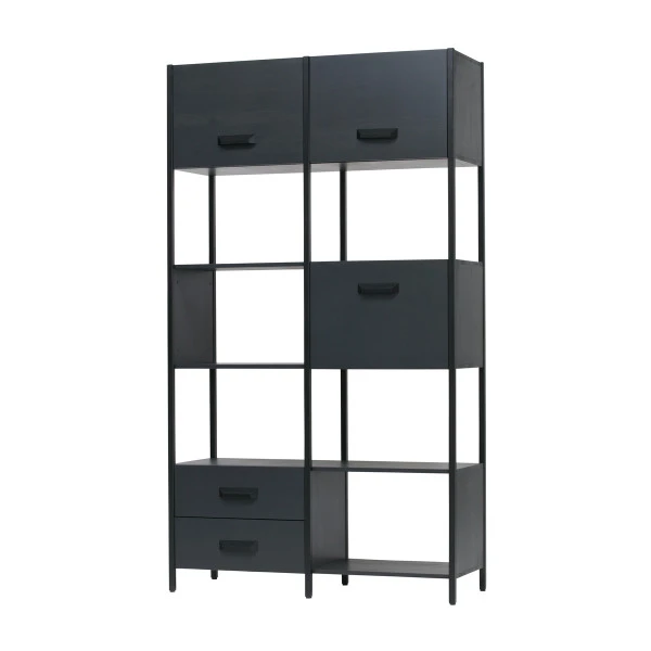 De BePure Legacy vakkenkast reikt 220 centimeter hoog en biedt met een breedte van 123 centimeter ruim plaats aan spulletjes en decoraties. Dankzij het strakke design in mat zwart heeft de vakkenkast een moderne uitstraling, maar je kunt deze ook prima combineren met een industrieel of retro interieur.