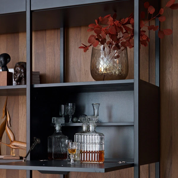 Deze moderne BePure Legacy vakkenkast combineert functionaliteit met decoratie. In de lades en achter de deurtjes is plaats voor spullen die je graag aan het zicht onttrekt. Maar je mooiste serviesgoed, vazen en fotolijsten stal je natuurlijk uit in de open vakken! Dankzij het mat zwart grenenhout kleurt elke accessoire met deze vakkenkast.