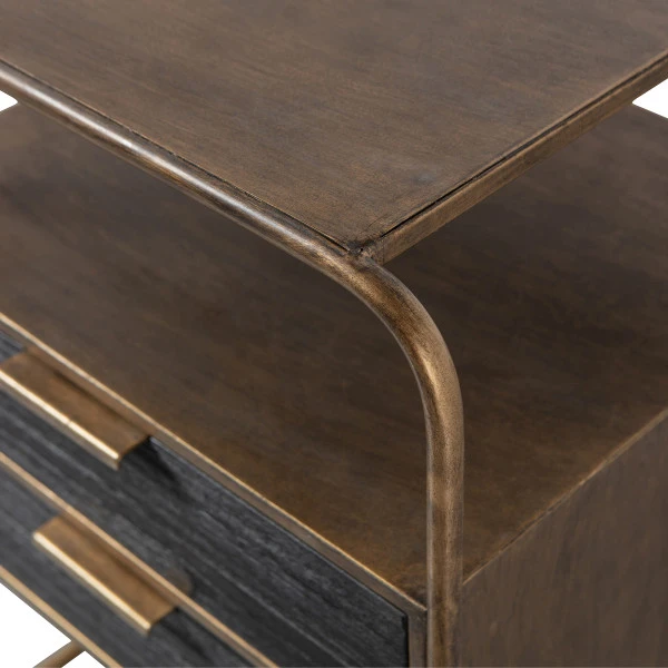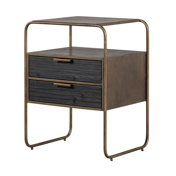 Het BePureHome Polite nachtkastje brengt een vintage sfeertje naar je slaapkamer. Het metalen frame heeft ronde vormen en is afgewerkt met een antique brass finish: warm en stijlvol! De diepe nerven in de zwart gelakte lades van hout geven het nachtkastje een robuust karakter.