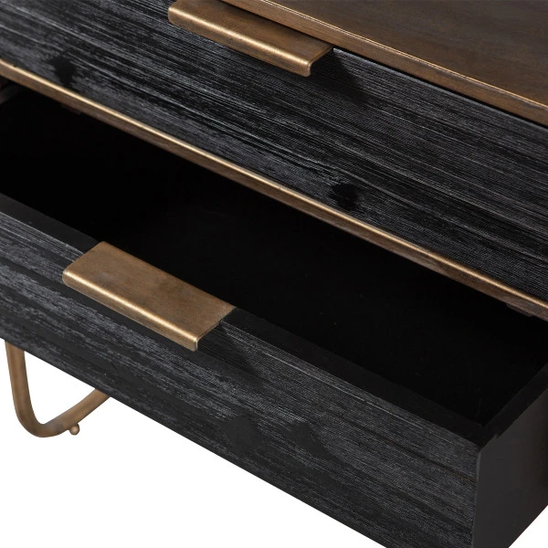 - De 2 lades zijn van zwart gekleurd hout met een duidelijke nerftekening