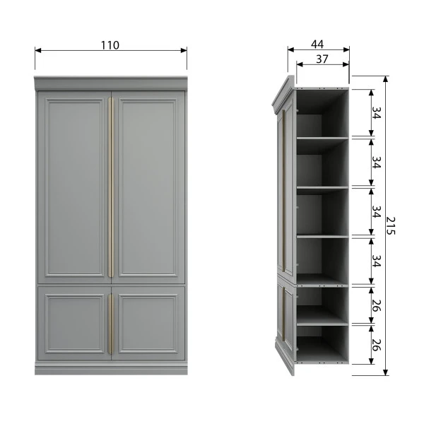 In de BePure Organize serie vind je behalve deze bergkast met legplanken ook een diepe garderobekast, waarbij je kunt kiezen uit compartimenten of een roede voor hangkleding. De mist grijze kasten zijn gemaakt van massief grenen met een geschuurde afwerking, waarop het antiek koper prachtig uitkomt.