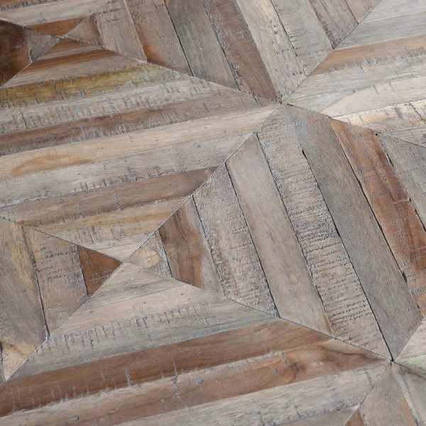- Tafelblad gemaakt van gerecycled teakhout en 3 cm dik