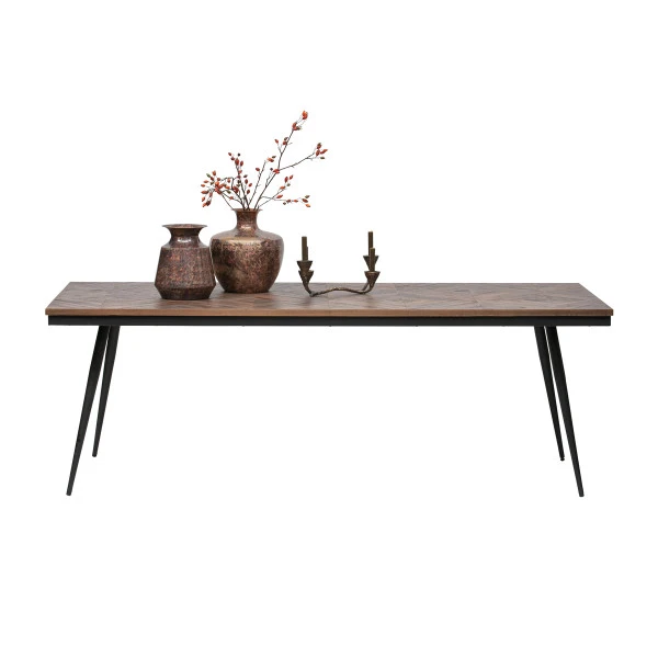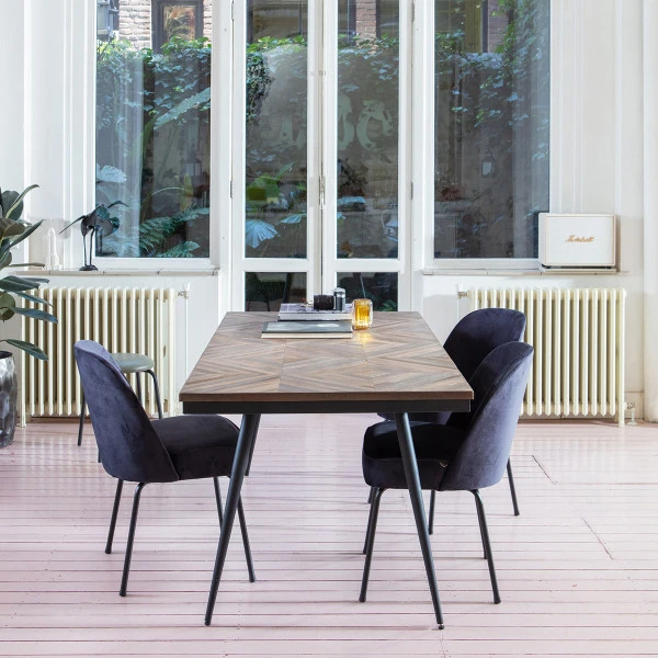 De BePureHome Rhombic eettafel heeft een blad van teak zó mooi, dat het bijna zonde is er borden met eten op te zetten. De tafel is namelijk ingelegd met stroken gerecycled teak in een elegant, jaren ’30 patroon. Zo krijgt je design eettafel een vintage tintje.
