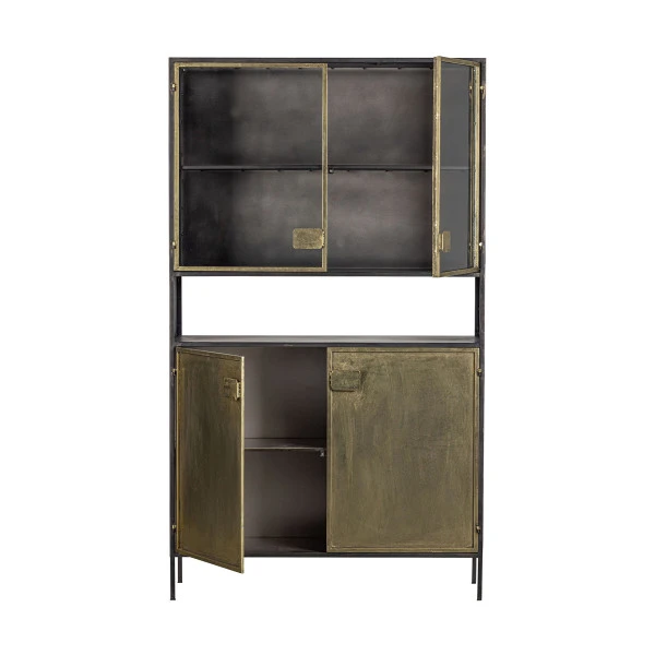 Gebruik de BePureHome Pack vitrinekast voor je mooiste serviesgoed, met alledaagse borden of pannen netjes weggeborgen achter de antique brass deuren. In het open vak is plaats voor een fruitschaal of een wijnfles in een standaard. Ook in de woonkamer komt de vitrinekast goed van pas: een stijlvol opbergmeubel voor kunst, wijnglazen, boeken en spelletjes onderin!