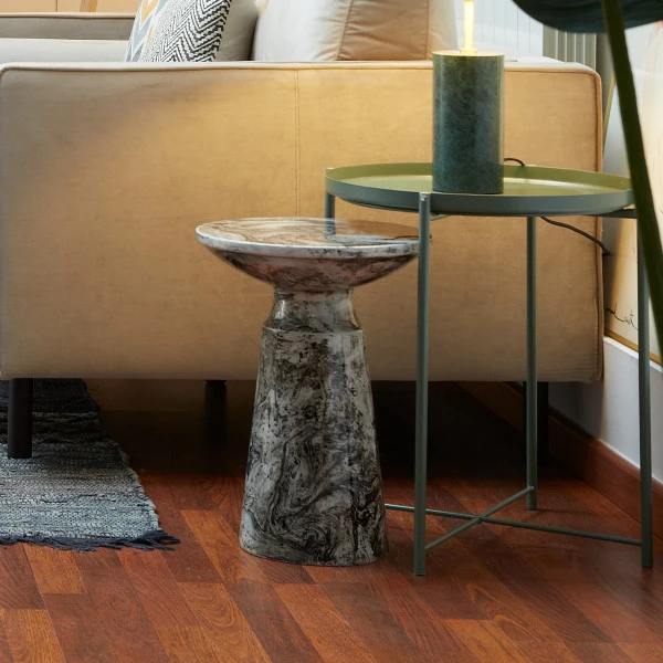 Van deze Kave Home Kesbury bijzettafel kun je je ogen niet afhouden! De prachtige patronen in het marmerglazuur zijn bijna hypnotiserend; alsof je verdwaalt in een universum met oneindig veel mogelijkheden. Zelfs als de bijzettafel al jaren naast je bankstel staat, ontdek je nog nieuwe details in het marmerglazuur.
