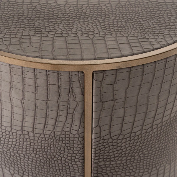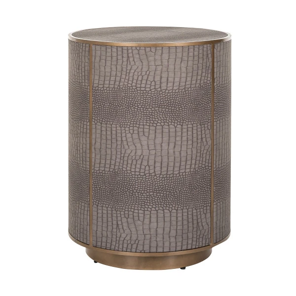 De meubels uit de Richmond Interiors Classio serie hebben een luxe uitstraling. De bekleding is gemaakt van hoogwaardig kunstleer met een voelbare slangenleer- structuur; een goudkleurige omlijsting maakt de bijzettafel compleet! Ook verkrijgbaar als sidetable en tv-meubel.
