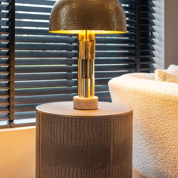 De Richmond Interiors Classio bijzettafel is een decoratie op zich; daar hoef je geen kunst of bloemen meer op te zetten. Het kan natuurlijk wel! Geef de bijzettafel van slangenleer met goud bijvoorbeeld een mooie plek naast de bank en laat het goud terugkomen in de tafellamp erbovenop. Of gebruik de bijzettafel als blikvanger naast je favoriete fauteuil en vul het blad met lekkernijen.