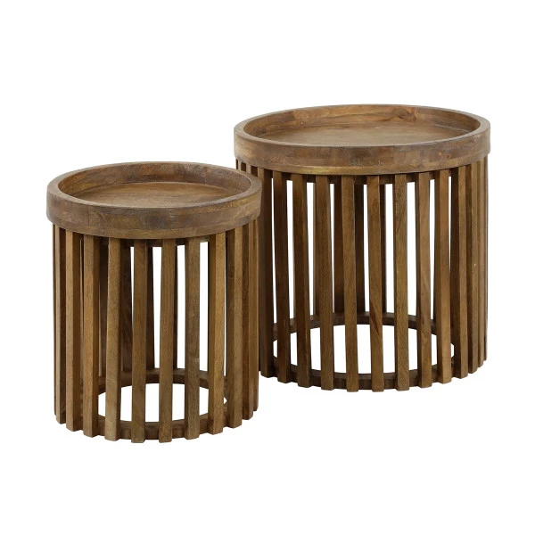 Met deze bijzettafelset met houten latten stroomt je zithoek over van sfeer! De mangohouten latten zijn afgewerkt in een zachte zandkleur: warm van tint en heel natuurlijk. Omdat het blad van de tafeltjes afneembaar is kun je de bijzettafelset ook als opbergplaats gebruiken! Ruim er bijvoorbeeld tijdschriften of plaids in op. Dankzij de opstaande rand staan je glazen veilig op deze bijzettafelset.