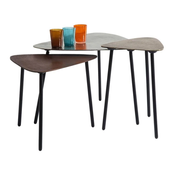 De bijzettafelset Kare Design Loft Triangle Vintage heeft een hippe ‘Manhattan’ uitstraling. De drie losse tafeltjes zijn uitgevoerd in een mix van industrieel en vintage, dankzij de metalen poten en de retro tinten van het gegalvaniseerd aluminium blad. Combineer de bijzettafelset met een bruine leren bank en een robuuste vloer voor een stoer en hip geheel!