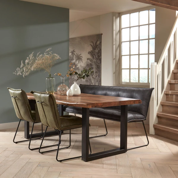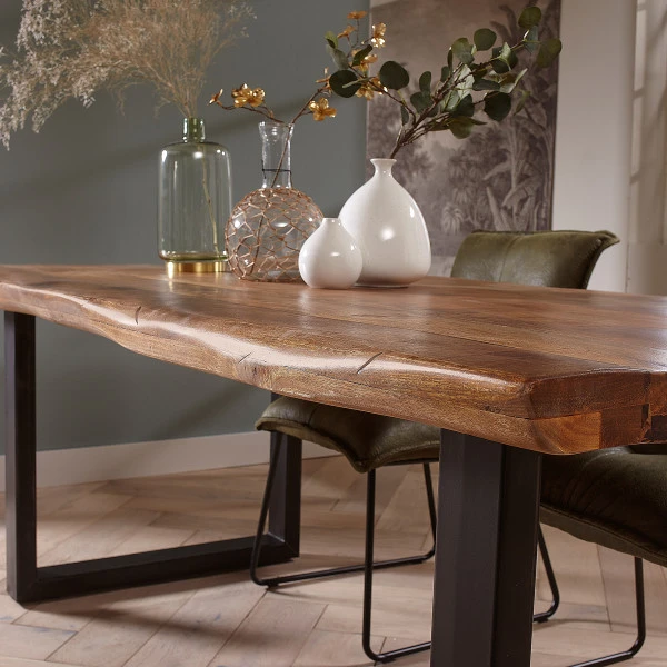 Bij de Tower Living Nicosia boomstamtafel heb je keuze uit verschillende formaten, variërend van 180 tot 260 centimeter breedte. Hoeveel vrienden wil jij kunnen uitnodigen voor een gezellige maaltijd? Dankzij de mix van mangohout en metaal past de boomstamtafel heel mooi in een modern- industrieel interieur. Schuif luxe stoelen aan of zet aan een kant een eetkamerbank van mangohout!