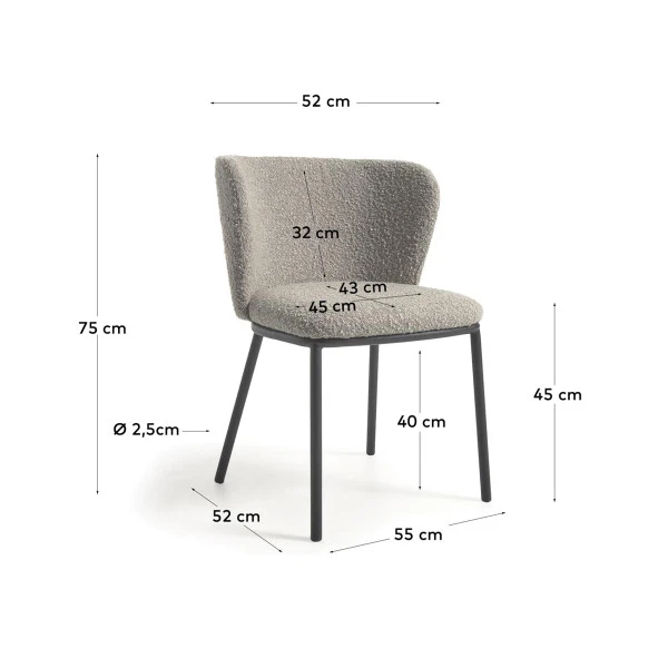 De Kave Home Ciselia eetstoel is net zo comfortabel als het lijkt. De combinatie van de ronde rug, de schuimvulling en de zachte boucle stof maken je avond heerlijk ontspannen! Ook je vrienden blijven graag nog even zitten voor een kop koffie of een spelletje kaart. Bij deze eetstoel heb je keuze uit drie kleuren boucle: wit, zwart of grijs. Kies je favoriet of mix twee kleuren voor een speels effect.