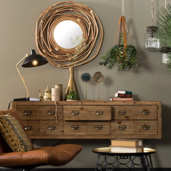 Van de Dutchbone Six ladekast knapt elk interieur op: de brede kast van vurenhout brengt veel, heel veel sfeer! Het vurenhout is voorzien van een antieke finish die perfect samengaat met de stalen handgrepen in vintage stijl. Aan de binnenkant zijn de 6 lades bekleed met textiel. Een gezellige en karaktervolle ladekast!