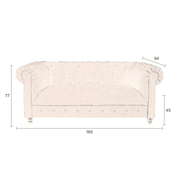 De Dutchbone Chester bank is er voor de echte, klassieke look in huis! De gecapitonneerde zitting vormt een vintage geheel met de gebogen armleuningen en gedraaide poten. Zet de Chesterfield bank voor een goedgevulde boekenkast en je waant je op de Oxford universiteit!