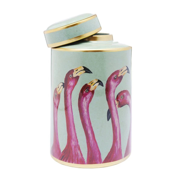 In de Kare Design Flamingos opbergpot kun je zakjes thee, koekjes, of bijvoorbeeld pennen en potloden bewaren. Maar bovenal vormt de deco opbergpot van 29 cm hoog een bijzondere decoratie in je interieur! De opbergpot is gemaakt van porselein en met de hand beschilderd met prachtige flamingos. Ook mooi als vaas voor je gedroogde bloemen!