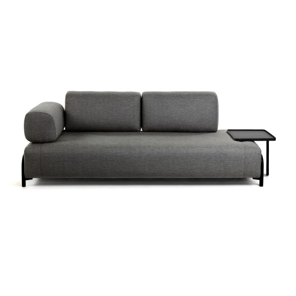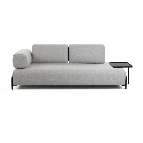 Met deze Kave Home Compo 3-zits bank kun je eindeloos creatief zijn! De rugkussens, armleuning en het tafeltje zijn allemaal los van elkaar te verplaatsen. Je kunt dus talloze leuke opstelling creëren, precies mooi voor in jouw zithoek. Bovendien heb je keuze uit 5 kleuren stof: beige, blauw, lichtgrijs, donkergrijs en turquoise. Dikke kussens met schuimvulling geven je volop comfort!