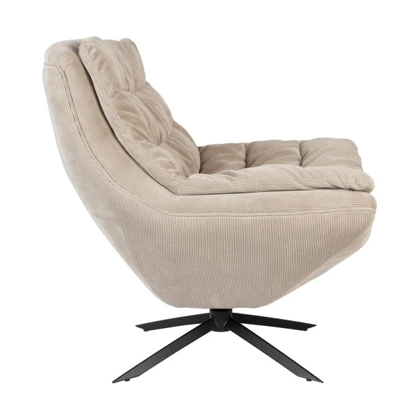 In de Dutchbone Vince fauteuil is het pas echt genieten van die goeie film. Zet de wijn klaar op de bijzettafel en zak lekker onderuit in de dikke kussens met zachte ribstof bekleding. De fauteuil heeft een draaibare voet met terugdraai mechanisme, dus je hoeft eigenlijk alleen nog maar op te staan om naar het toilet te gaan!