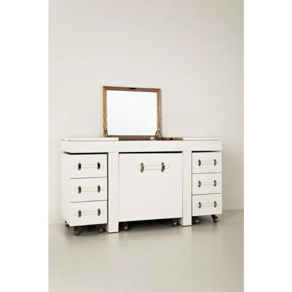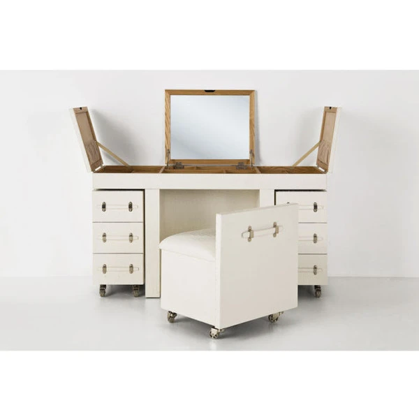 De Kare Design Diva kaptafel heeft alles wat je nodig hebt om in stijl en comfort te genieten van een uitgebreide make-up sessie. De functionele make-up kaptafel bestaat namelijk uit een tafel, twee verrijdbare ladeblokken en een stoel op wieltjes! Klap de tafel open en er komt een spiegel tevoorschijn, evenals extra opbergruimte. Een bijzonder functionele kaptafel waarin je veel make-up, haaraccessoires en rommeltjes kwijt kunt.