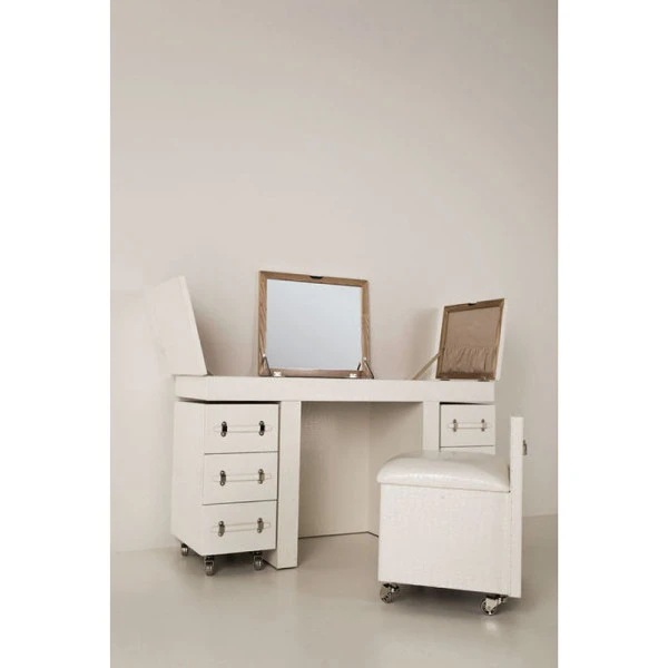 Je herkent de Kare Design Diva serie aan de witte basis, versierd met kunstleer en RVS details. Behalve deze functionele kaptafel vind je in de serie ook een bijpassende make-up dressoir voor nóg meer opbergruimte!