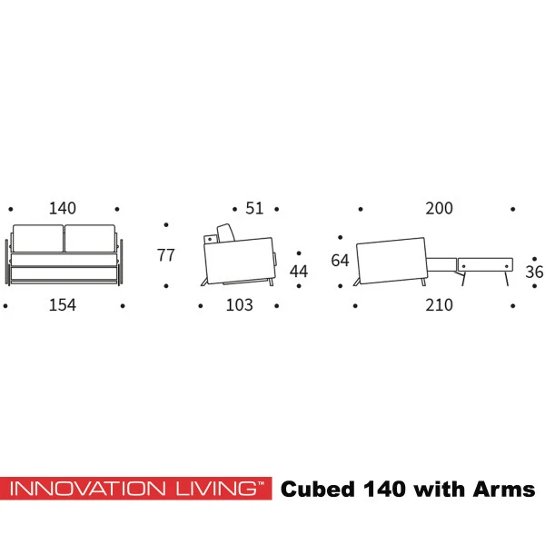 De slaapbank Innovation Living Cubed Arm 140 heeft een uniek, compact design met een breedte van 140 centimeter, dat je eenvoudig omtovert tot een 2 persoons bed van 154 bij 207 centimeter. Een bijzondere slaapbank met luxe armleuningen. Innovation geeft je keuze uit enkele standaard stofferingen. Daarnaast zijn echter nog veel meer stoffen mogelijk! Kom gerust langs in de winkel om kleurstalen in het echt te ervaren. Voor niet-standaard stoffen geldt een meerprijs en een langere levertijd.
