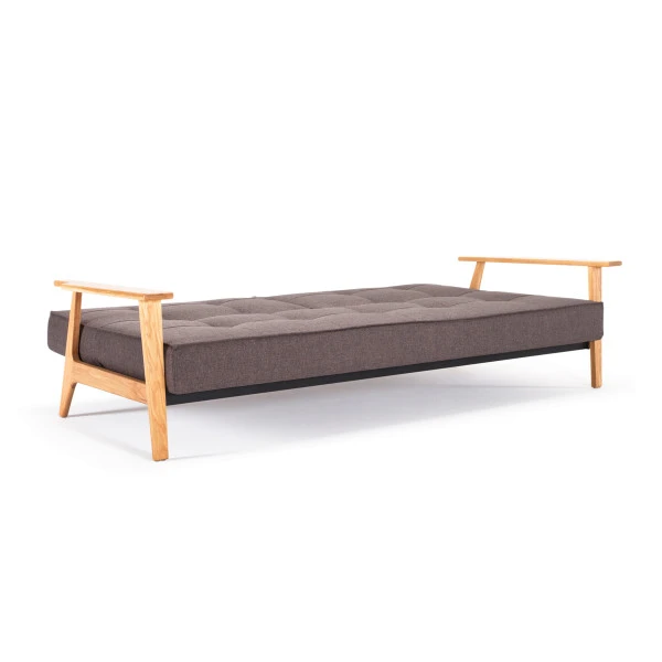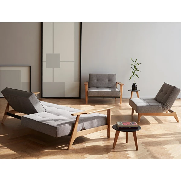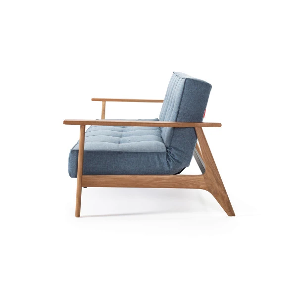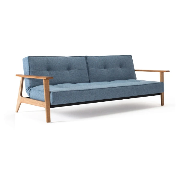 De Innovation Living Splitback Frej is een elegante, modern slaapbank met armleuningen van gelakt eiken. Je hebt de keuze uit zeven standaard stofferingen. Op verzoek zijn echter nog veel meer stoffen mogelijk! Kom gerust langs in de winkel om kleurstalen in het echt te ervaren. De stoffen zijn ook te bestellen voor thuis. Voor niet-standaard stoffen geldt een meerprijs en een langere levertijd. Het design is zo smaakvol dat je bijna zou vergeten dat je er een comfortabel 115 bij 200 centimeter groot bed van kunt maken!