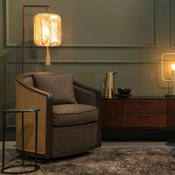 Maar de Dutchbone Amaron draaifauteuil is veel meer dan praktisch of comfortabel. Dankzij de mix van rotan webbing, donker hout en grijze stof vormt de draaifauteuil een bijzondere decoratie in je interieur! Van elke kant ziet de draaifauteuil er net even anders uit. En je creëert er een gezellige, retro look mee.