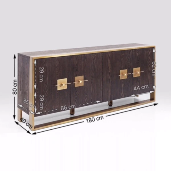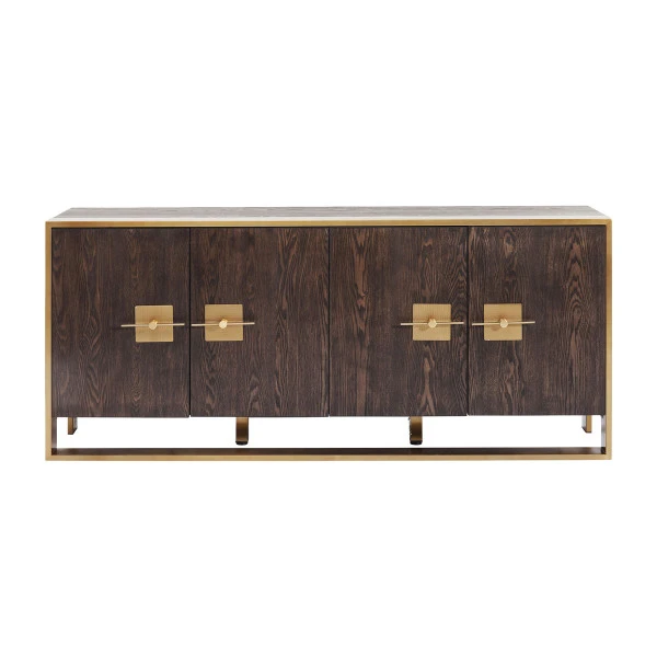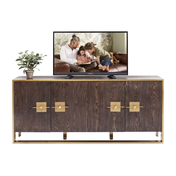 Dit houten Kare Design Osaka dressoir is omgeven door een prachtige messing lijst: als een stukje natuur, gevangen in een schilderij. Het dressoir biedt met een breedte van 180 centimeter en vier deuren heel wat opbergruimte! Voor administratie en spelletjes, of juist voor serviesgoed. Bovendien zorgt de mix van houten deuren en messing lijnen voor veel sfeer in huis.