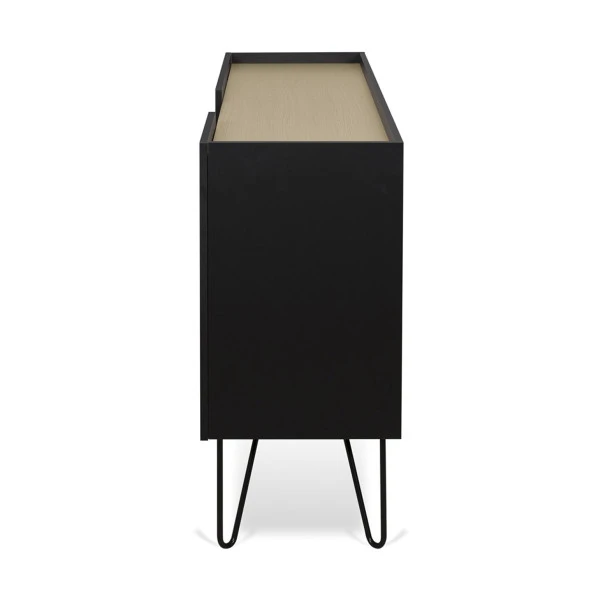 De meubels uit de TemaHome Nina serie gaan uitstekend samen met de Scandinavische design woonstijl. Behalve dit dressoir vind je in de serie ook een tv-meubel in mat zwart of wit, met eiken planken als sfeervol element.