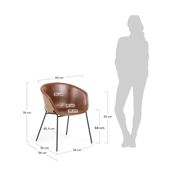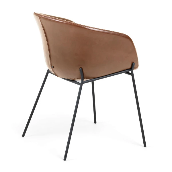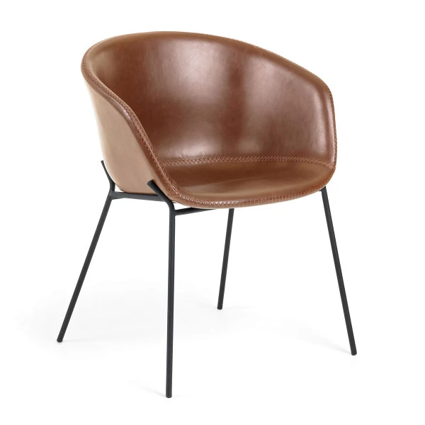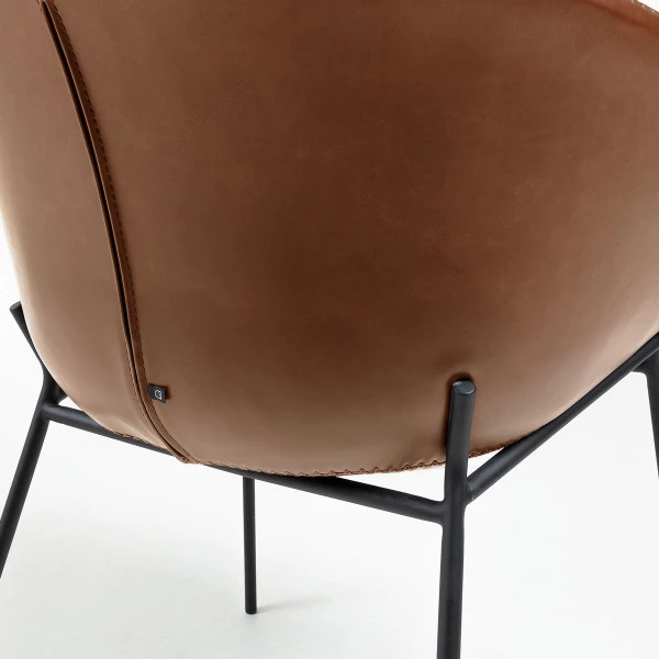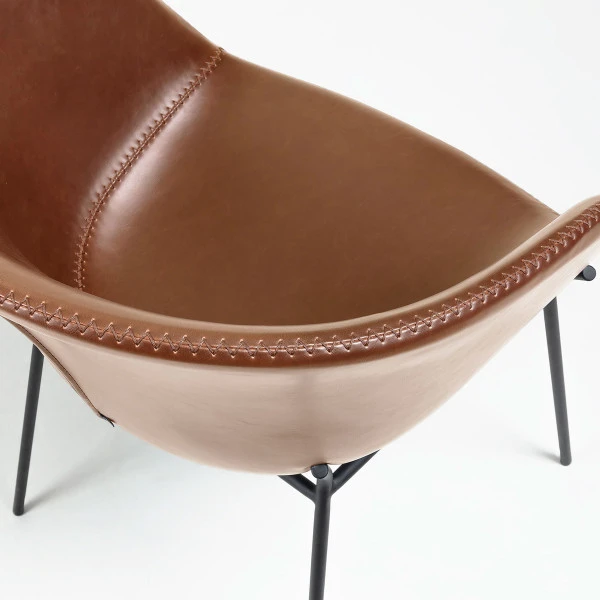 Deze Kave Home Yvette eetkamerstoel brengt sfeer, karakter en design naar je eethoek. De bruin leren kuipzitting heeft een warme tint en is subtiel versierd met decoratieve stiknaden. Voor een vintage tintje in het moderne geheel! In de kuip van kunstleer zit je bovendien heerlijk comfortabel: geniet in stijl van de maaltijden.