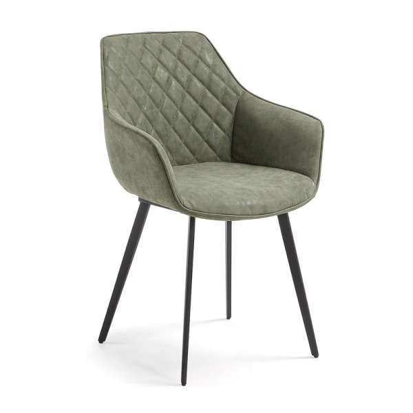 De Kave Home Amira (Aminy) stoel is verkrijgbaar in drie kleuren: groen, taupe en zwart. Het kunstleer geeft de kleuren een zachte uitstraling. Kies je favoriet of combineer twee kleuren voor een speels geheel aan tafel! De stoel met ruitjespatroon past mooi aan een moderne eettafel van hout of juist een tafel met metalen onderstel om samen te gaan met de elegante poten van de stoel.