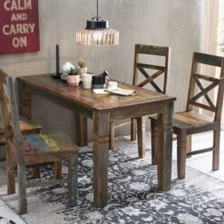 Geniet van de vrolijke kleuren in het sloophout, die je meevoeren naar het interessante en mooie India. Een compacte eettafel van 140 centimeter breed; leuk met een speelse eetkamerbank aan één zijde en houten stoelen aan de andere zijde. In de Otar serie van Lavis kun je terecht voor nog veel meer unieke meubels van Indiaas sloophout, zoals een bijpassende buffetkast of dressoir.