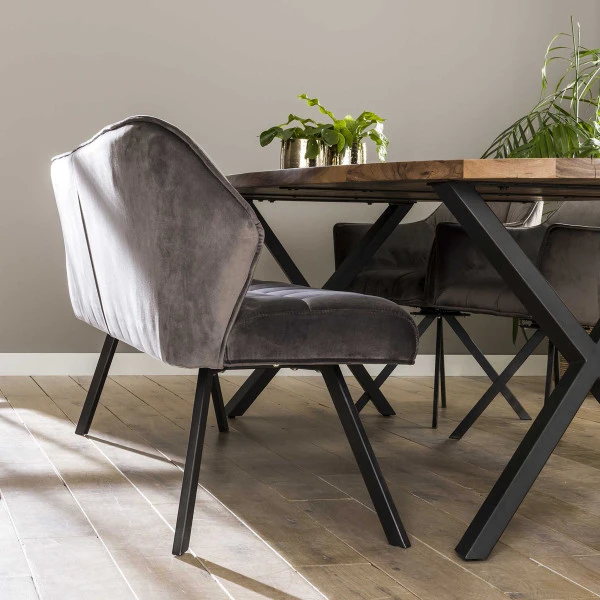 Zet de eetkamerbank aan één kant van de tafel en creëer een speels sfeertje met bijpassende stoelen aan de overkant! Je vindt ze allemaal in de Donna serie van Giani. Het design van de fluwelen eetkamerbank en stoelen gaat erg mooi samen met een modern- industriële woonstijl.