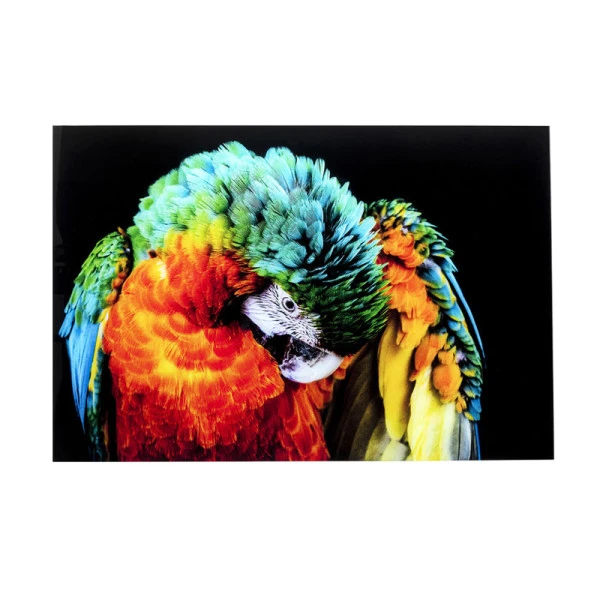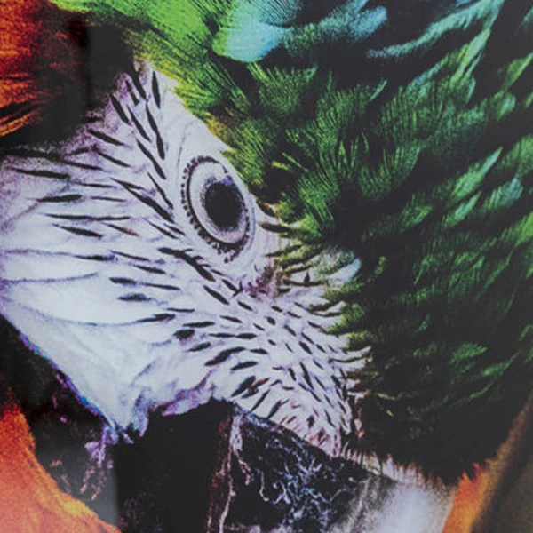Het Kare Design Tropical Parrot schilderij is niet zomaar een portret van een papegaai. Deze papegaai is namelijk haarscherp afgedrukt als fotoprint, achter een 4 mm dikke laag glas. Alsof de papegaai in je kamer zit! Met een formaat van 80 bij 120 centimeter kun je elk detail van zijn prachtige verendek goed zien op dit glas schilderij.