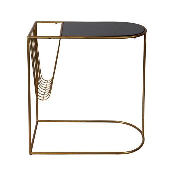 De glazen Dutchbone Eileen bijzettafel is voorzien van een handig opbergvak voor tijdschriften, kranten of boeken. Het charmante rek is verwerkt in het slanke frame van gepoedercoat ijzer met een warme, bronzen tint. Een blad van 5 mm dik, zwart gekleurd glas maakt de vintage look van de bijzettafel compleet!