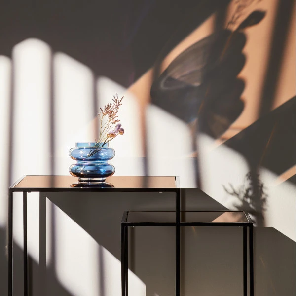 De Kave Home Sute bijzettafelset bestaat uit twee tafeltjes met een hoogte van 40 en 50 centimeter. De kleine tafel past precies onder de grote, zodat je de bijzettafelset op in verschillende opstellingen kunt neerzetten! Of verdeel de glazen tafeltjes over de zithoek voor een harmonieus geheel. Dankzij het slanke onderstel past de bijzettafelset mooi in een modern interieur, maar je kunt ook combineren met retro of modern- industriële meubels.