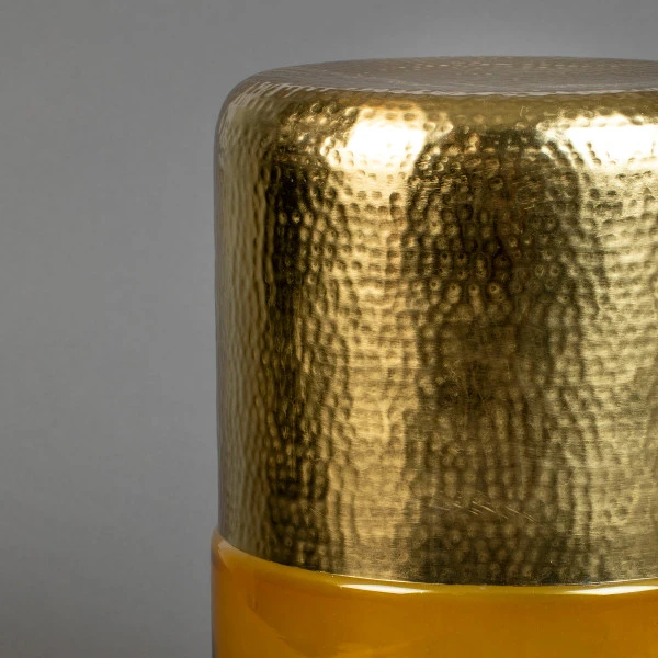 Met de Dutchbone Cave bijzettafel creëer je een retro sfeertje! Het beslagen, gouden metaal vormt een speels geheel met het gekleurde glas aan de onderzijde van de bijzettafel. Met een diameter van 35 centimeter neemt de salontafel een bescheiden ruimte in je zithoek in, en toch voegt het bijzondere design veel toe.