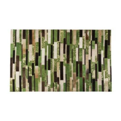 Met het Kare Design Brick Green tapijt op de vloer krijgt je zithoek een compleet nieuwe uitstraling! Het tapijt is gemaakt van tientallen stroken koeienhuid in groen, bruin en wit. Samen vormen ze een modern design tapijt. De stroken koeienhuid zijn gedecoreerd met een grove steek, die voor een speels detail zorgt!