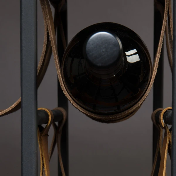 - Met riemen van buffelleer om 9 flessen in te hangen