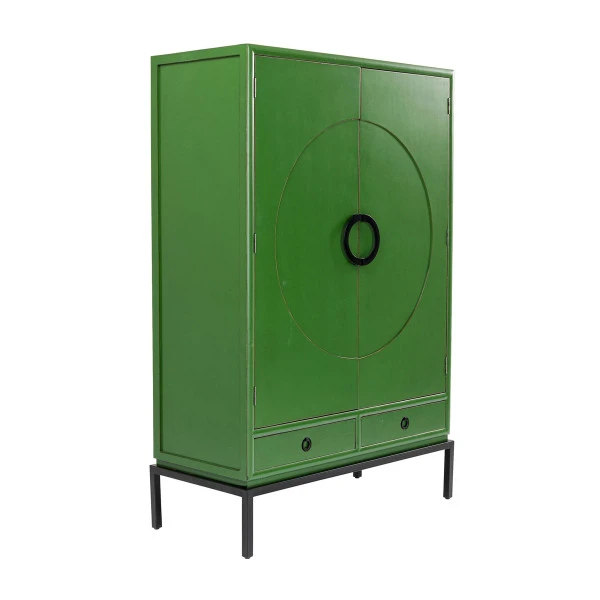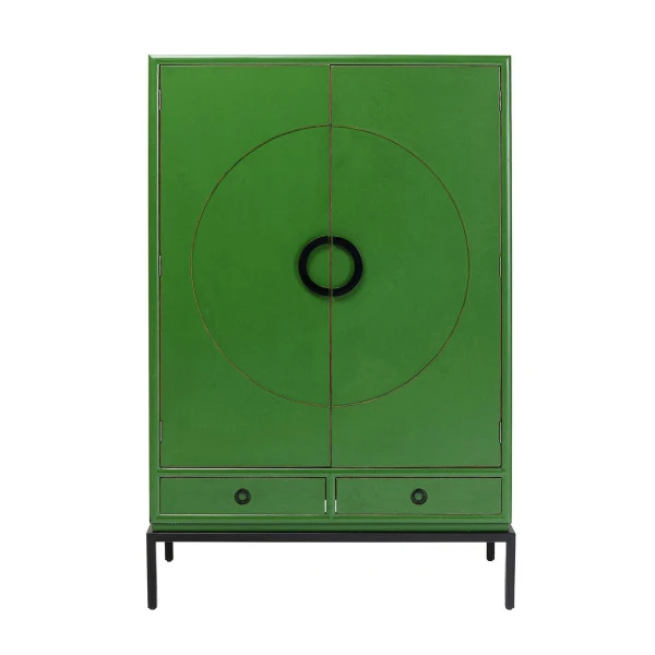 De kasten uit de Kare Design Disk serie herken je meteen aan de cirkel die de deuren verbindt. Kijk gauw verder voor een bijpassend dressoir van hetzelfde groene populierenhout! Daarnaast is deze design kledingkast verkrijgbaar in rood of roze met messing pootjes.