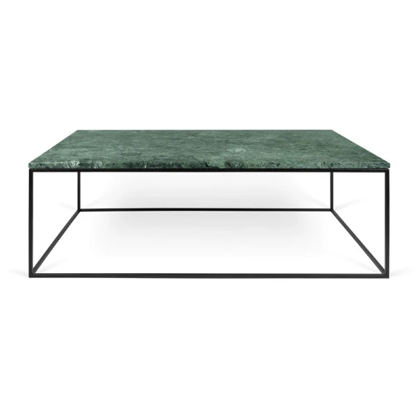 De groene TemaHome Gleam Marble salontafel vormt voortaan het pronkstuk van je zithoek. In het marmer zijn talloze kleurvariaties en details te zien; je blÃjft naar dit prachtige groene blad kijken! Met een breedte van 120 cm is er genoeg ruimte op de salontafel voor wijnglazen en schaaltjes met lekkers, zonder dat het marmer compleet onder je serviesgoed verdwijnt. Je hebt keuze uit twee varianten: met een zwart of verchroomd metalen onderstel.