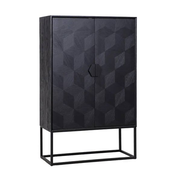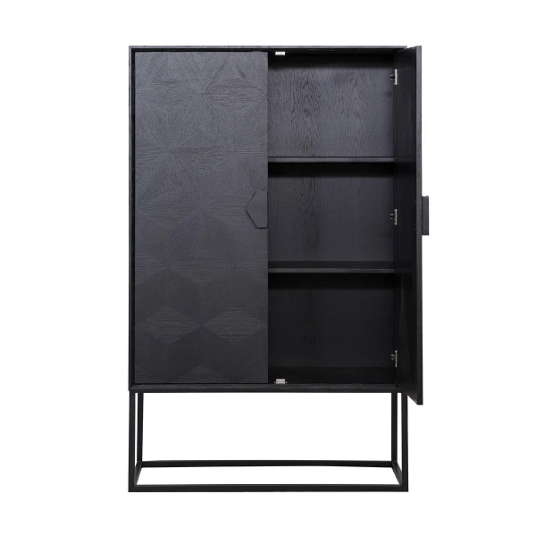 Kenmerkend voor de Richmond Interiors Blax serie is het hoogwaardige eikenfineer met een subtiel, geometrisch patroon. In het zwart hout zie je ook de prachtige lijnen van de natuur nog mooi terug. Combineer de grote kast met een bijpassende salontafel en bijzettafel!