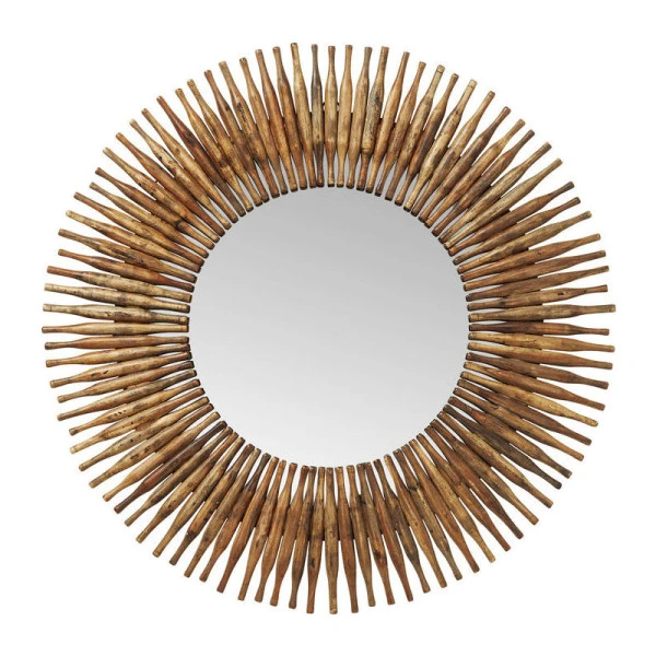 Met de Kare Design Sunlight wandspiegel haal je een bijzondere decoratie in huis. Het frame bestaat uit tientallen houten stokjes die de stralen van de zon symboliseren, en tegelijkertijd voor een natuurlijke sfeer in huis zorgen! Tientallen onderdelen, en toch is het geheel rustig; dat heeft te maken met de natuurlijke uitstraling van de wandspiegel. Een bijzonder plaatje.
